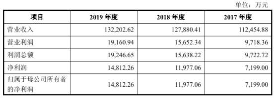2016年至2019年,公司實現(xiàn)營業(yè)收入分別為12.23億元、11.25億元、12.79億元、13.22億元,同期實現(xiàn)歸屬于母公司所有者的凈利潤為1.23億元、7199.00萬元、1.20億元、1.48億元。