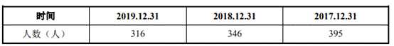 上緯新材員工人數(shù)連降2年。2017年至2019年,上緯新材員工人數(shù)分別為395人、346人、316人。