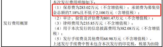 上緯新材公告顯示,本次發(fā)行費(fèi)用約3752.53萬(wàn)元(不含增值稅)。根據(jù)公司之前的招股意向書(shū),本次發(fā)行“保薦費(fèi)283.02萬(wàn)元(不含增值稅);承銷(xiāo)費(fèi)為募集資金總額的7.18%且不低于2100萬(wàn)元(含增值稅)”。