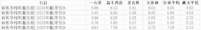 表六:醫(yī)藥零售連鎖企業(yè)凈利率情況
