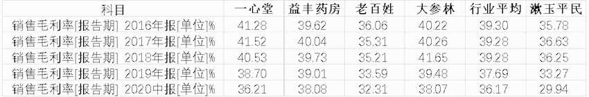 表一:醫(yī)藥零售連鎖企業(yè)毛利率情況