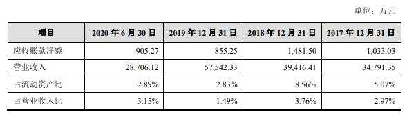 公司應(yīng)收賬款周轉(zhuǎn)率低于可比上市公司,并且差距較大,僅為同行均值的三分之一。2014年末、2015年末、2016年末、2017年末、2018年末、2019年末、2020年6月末,華綠生物應(yīng)收賬款凈額分別為528.89萬元、677.29萬元、746.99萬元、1033.03萬元、1481.50萬元、855.25萬元、905.27萬元,占營業(yè)收入比分別為2.76%、2.82%、2.81%、2.97%、3.76%、1.49%、3.15%。