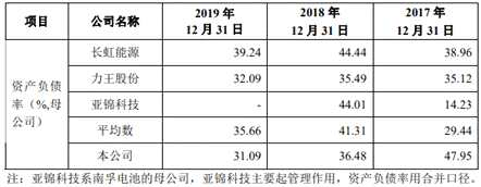 2016年至2019年各期末,野馬電池的資產(chǎn)負債率分別為44.26%、47.95%、36.48%和31.09%,流動比率分別為1.56、1.35、1.87和2.26,公司的速動比率分別為1.02、0.89、1.27和1.62。