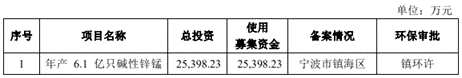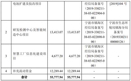 公司擬募集5.58億元,其中2.54億元用于年產(chǎn)6.1億只堿性鋅錳電池擴建及技改項目,1.34億元用于研發(fā)檢測中心及智能制造中心項目,4677.20萬元用于智慧工廠信息化建設(shè)項目,1.23億元用于補充流動資金。