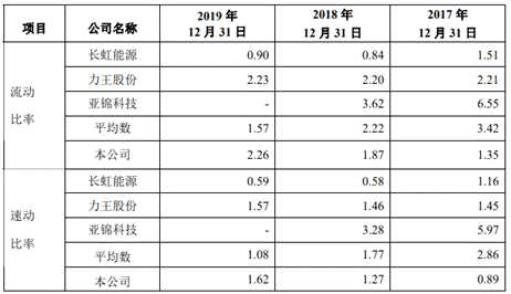 同期,同行業(yè)可比公司的資產(chǎn)負債率均值分別為31.56%、29.44%、41.31%和35.66%,流動比率均值分別為1.79、3.42、2.22和1.57,速動比率均值分別為1.37、2.86、1.77和1.08。