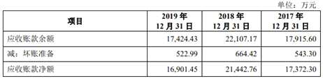 2019年應(yīng)收賬款1.7億元 2016年至2019年各期末,野馬電池的應(yīng)收賬款余額分別為20,489.42萬元、17,915.60萬元、22,107.17萬元和17,424.43萬元,應(yīng)收賬款凈額為19,873.29萬元、17,372.30萬元、21,442.76萬元和16,901.45萬元,占營業(yè)收入的比例分別為22.13%、16.12%、20.38%和17.06%。