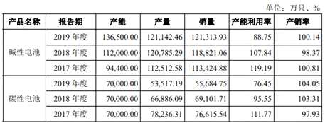 2016年至2019年,野馬電池堿性電池產(chǎn)能利用率分別是108.12%、119.19%、107.84%、88.75%,碳性電池的產(chǎn)能利用率為105.34%、111.77%、95.55%、76.45%。其中,堿性電池和碳性電池2019年的產(chǎn)能利用率較2018年均有近20%的回落。
