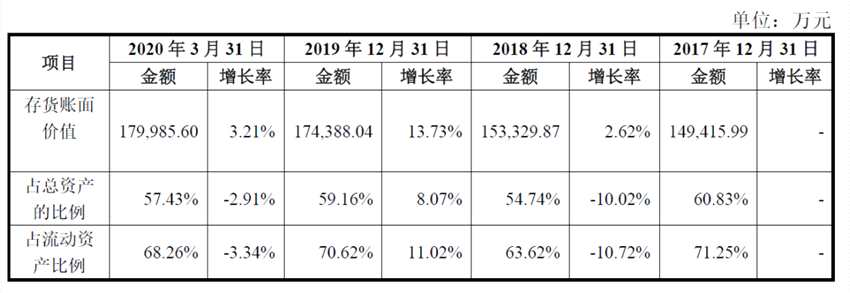 報告期內(nèi),該公司的存貨賬面價值分別為14.94億元、15.33億元、17.44億元和18億元,占流動資產(chǎn)的比例分別為71.25%、63.62%、70.62%、68.26%。存貨規(guī)模的逐年增大導(dǎo)致存貨周轉(zhuǎn)效率下降,報告期內(nèi)分別為9.44、8.67、7.96和0.83。