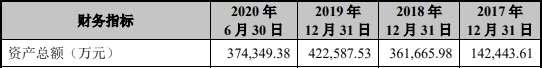 2017年至2019年及2020年上半年,會(huì)通股份資產(chǎn)總額分別為14.24億元、36.17億元、42.26億元、37.43億元。