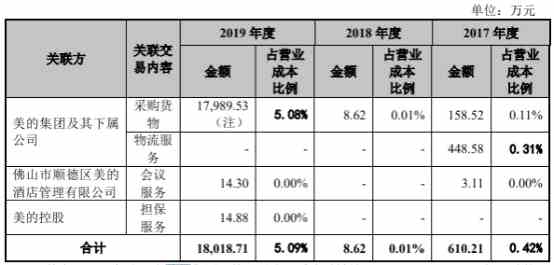 會(huì)通股份表示,2019年,公司向美的集團(tuán)關(guān)聯(lián)采購金額較大,主要系美的集團(tuán)自2019年開始建議其供應(yīng)商通過美的集團(tuán)采購中心采購樹脂類原材料,上述建議不具有強(qiáng)制性。公司綜合考慮原材料采購價(jià)格、供貨情況等因素,通過美的集團(tuán)采購中心采購了少量原材料。
