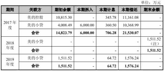 報(bào)告期內(nèi),會(huì)通股份與美的集團(tuán)還存在關(guān)聯(lián)資金拆借的情況,包括公司向美的集團(tuán)下屬公司美的小貸借入資金。2017年,會(huì)通股份向美的小貸和美的控股借入資金的期初余額為1.48億元,本期拆入金額為6000萬元,本期償還2.15億元。