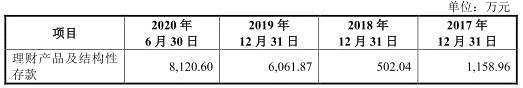 報(bào)告期內(nèi),公司理財(cái)產(chǎn)品及結(jié)構(gòu)性存款金額分別為1158.96萬(wàn)元、502.04萬(wàn)元、6061.87萬(wàn)元、8120.60萬(wàn)元。