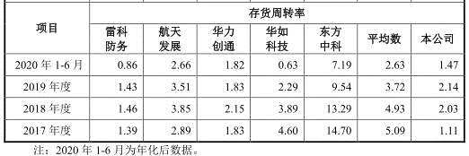 報(bào)告期內(nèi),公司存貨周轉(zhuǎn)率分別為1.11、2.03、2.14、1.47,低于可比公司平均存貨周轉(zhuǎn)率5.09、4.93、3.72、2.63。