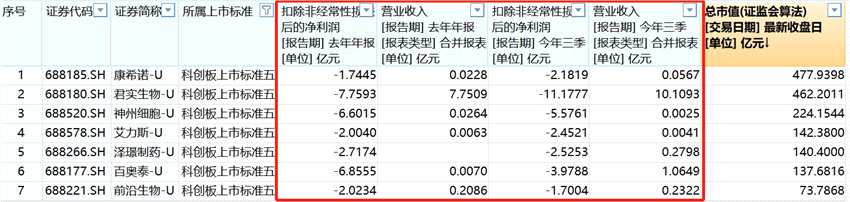 今年1月23日,通過科創(chuàng)板第五套上市標準的【澤璟制藥(688266)、股吧】至今仍未實現(xiàn)盈利。財報顯示,2019年澤璟制藥實現(xiàn)扣非凈利虧損2.72億元,2020年前三季度實現(xiàn)扣非凈利虧損2.53億元,而今年前三季度營收僅0.28億元。另外,康希諾2019年扣非凈利及營收分別為-1.74億元和0.02億元,2020年前三季度扣非凈利虧損擴大至2.18億元,實現(xiàn)營收0.06億元。此外,神州細胞、君實生物、艾力斯等通過科創(chuàng)板第五通道IPO的公司均未實現(xiàn)盈利。