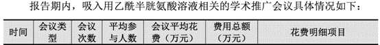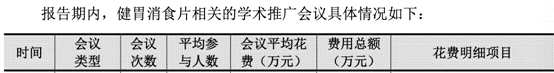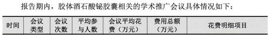 而華納藥廠市場推廣費中主要為學術推廣費,報告期內(nèi)分別為9141.83萬元、2.31億元、3.22億元、1.32億元。華納藥廠在首輪審核問詢函的回復中披露了學術推廣會議具體情況,華南藥廠分別為十一個品種進行會議推廣,分別為膠體果膠鉍干混懸劑、吸入用乙酰半胱氨酸溶液、琥珀酸亞鐵片、雙氯芬酸鈉緩釋片、磷霉素氨丁三醇散、克霉唑陰道片、膠體果膠鉍膠囊、膠體酒石酸鉍膠囊、裸花紫珠分散片、銀杏葉分散片、健胃消食片。