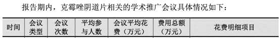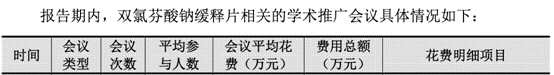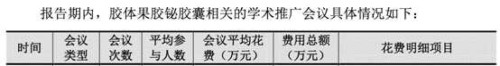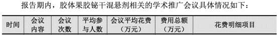 華納藥廠在首輪審核問詢函的回復中披露了學術推廣會議具體情況。華納藥廠學術推廣會議按照主要品種可以分為十一種,分別為膠體果膠鉍干混懸劑、吸入用乙酰半胱氨酸溶液、琥珀酸亞鐵片、雙氯芬酸鈉緩釋片、磷霉素氨丁三醇散、克霉唑陰道片、膠體果膠鉍膠囊、膠體酒石酸鉍膠囊、裸花紫珠分散片、銀杏葉分散片、健胃消食片。