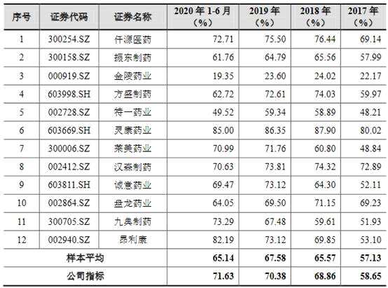 報告期內(nèi),華納藥廠主營業(yè)務毛利率略高于同行業(yè)可比公司平均水平,即57.13 %、65.57%、67.58%、65.14%。