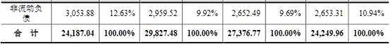 同期,華納藥廠負債合計2.42億元、2.74億元、2.98億元、2.42億元。其中,流動負債分別為2.16億元、2.47億元、2.69億元、2.11億元,占負債總額的比例分別為89.06%、90.31%、90.08%、87.37%;非流動負債分別為2653.31萬元、2652.49萬元、2959.52萬元、3053.88萬元。