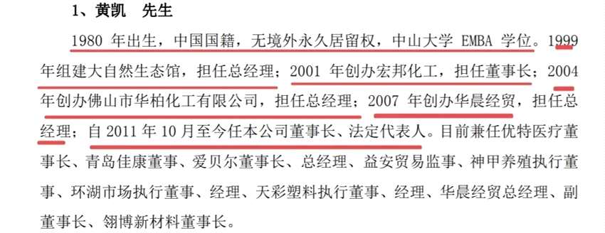 根據(jù)招股書(shū)及相關(guān)資料,黃凱父親簡(jiǎn)歷創(chuàng)業(yè)板招股書(shū)2014年申報(bào)稿曾有披露: