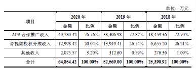 根據(jù)招股書,寶寶巴士以研發(fā)、制作、運營兒童啟蒙音視頻和App為核心,主要通過將旗下App接入廣告聯(lián)盟客戶如百度、谷歌,獲取合作推廣收入,以及將兒童啟蒙音視頻授權(quán)給第三方網(wǎng)絡(luò)音視頻媒體播放獲取分成收益。此外還包括有兒童衍生品銷售和付費內(nèi)容等的其他業(yè)務(wù)。其中APP的合作推廣收入是公司主要的收入來源,收入占比超過七成。