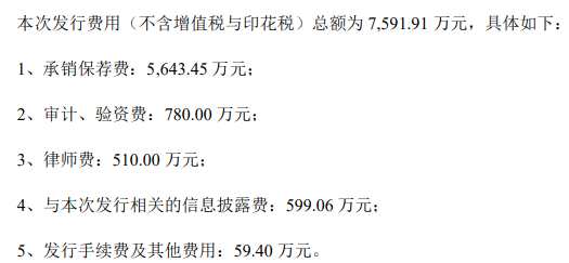 壹石通本次發(fā)行費(fèi)用(不含增值稅與印花稅)總額為7591.91萬元,其中中金公司獲得承銷保薦費(fèi)5643.45萬元。