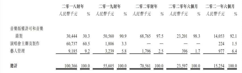 公司實控人為李輝,擁有超過20年的音樂制作經(jīng)驗,上市公司三七互娛(002555)(002555.SZ)通過子公司持有風(fēng)華秋實20%股份。根據(jù)灼識咨詢資料,2020年風(fēng)華秋實在中國400多家唱片公司中排名第16位,市占率約為0.6%;而如果將范圍縮小至總部位于中國內(nèi)地的唱片公司,則風(fēng)華秋實在200多個競爭對手中排名第5,市占率約為1.5%。