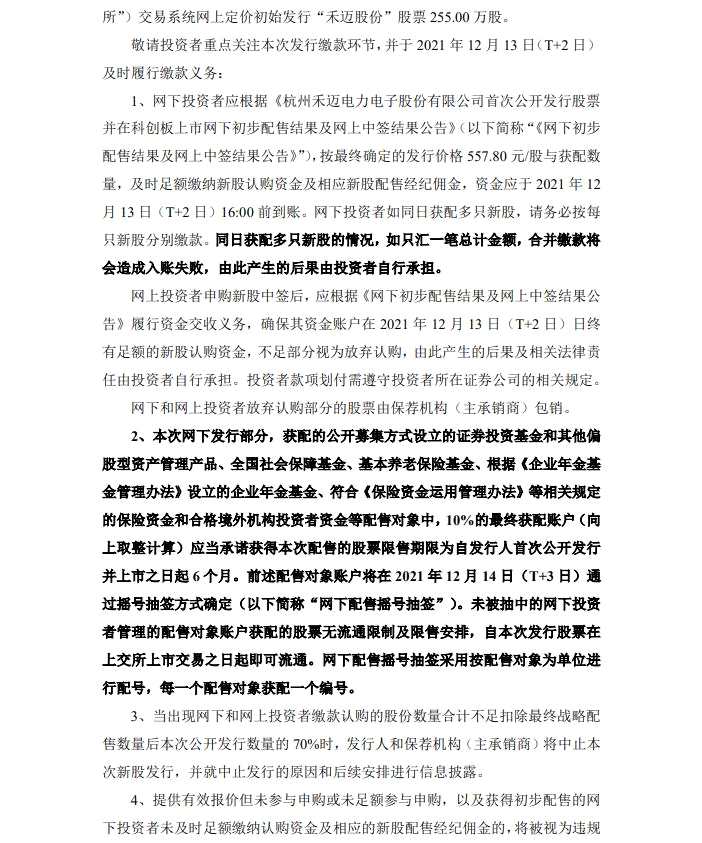12月9日,禾邁股份公告,回?fù)軝C(jī)制啟動(dòng)后,網(wǎng)上發(fā)行最終中簽率為0.02886891%。