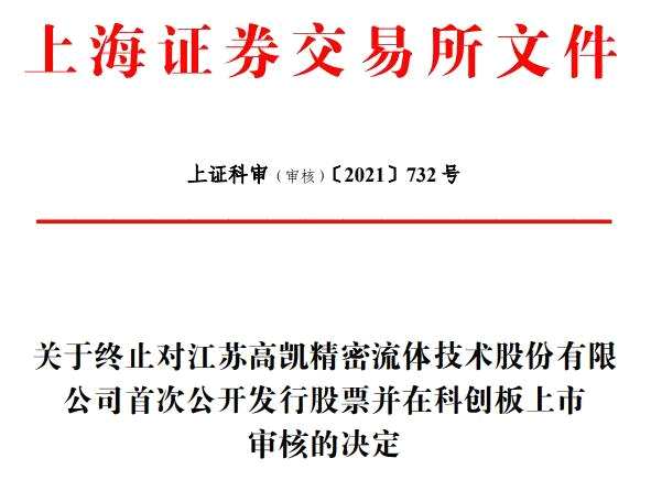 據(jù)上交所官網(wǎng)消息,上交所決定終止江蘇高凱精密流體技術(shù)股份有限公司(以下簡稱“高凱技術(shù)”)首次公開發(fā)行股票并在科創(chuàng)板上市審核。