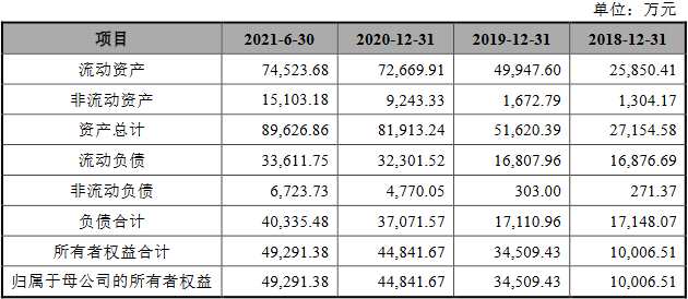2018年末、2019年末、2020年末和2021年1-6月末,德明利資產(chǎn)總計(jì)分別為27,154.58萬(wàn)元、51,620.39萬(wàn)元、81,913.24萬(wàn)元和89,626.86萬(wàn)元,負(fù)債合計(jì)分別為17,148.07萬(wàn)元、17,110.96萬(wàn)元、37,071.57萬(wàn)元和40,335.48萬(wàn)元。