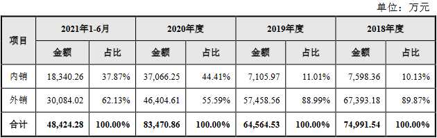 過(guò)去三年及一期,該公司內(nèi)銷收入分別為7,598.36萬(wàn)元、7,105.97萬(wàn)元、37,066.25萬(wàn)元和18,340.26萬(wàn)元,占比分別為10.13%、11.01%、44.41%和37.87%;外銷收入分別為67,393.18萬(wàn)元、57,458.56萬(wàn)元、46,404.61萬(wàn)元和30,084.02萬(wàn)元,占比分別為89.87%、88.99%、55.59%和62.13%。
