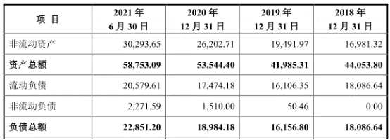 2018年至2021年6月30日,坤泰股份負(fù)債總額分別為18,086.64萬(wàn)元、16,156.80萬(wàn)元、18,984.18萬(wàn)元和22,851.20萬(wàn)元。