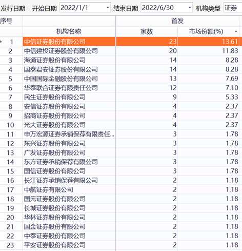 在IPO家數(shù)下降、籌資額上升的背景下,券商投行之間競爭更為激烈。且2022年上半年,項目越發(fā)向頭部券商集中。