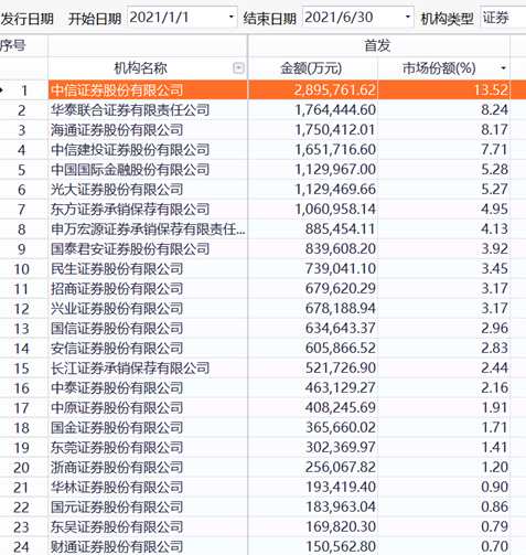 6月IPO承銷:中信證券收獲最多