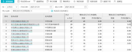而在2021年上半年,北交所尚未成立。因此即使在增發(fā)領(lǐng)域,頭部券商也有明顯優(yōu)勢。2021年上半年,中信證券以為47個增發(fā)項目位列第一。而開源證券只位列第五。