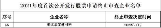 據(jù)中國(guó)證監(jiān)會(huì)網(wǎng)站消息,證監(jiān)會(huì)決定終止對(duì)湖北犇星新材料股份有限公司(以下簡(jiǎn)稱“犇星新材”)首次公開發(fā)行股票申請(qǐng)的審查。