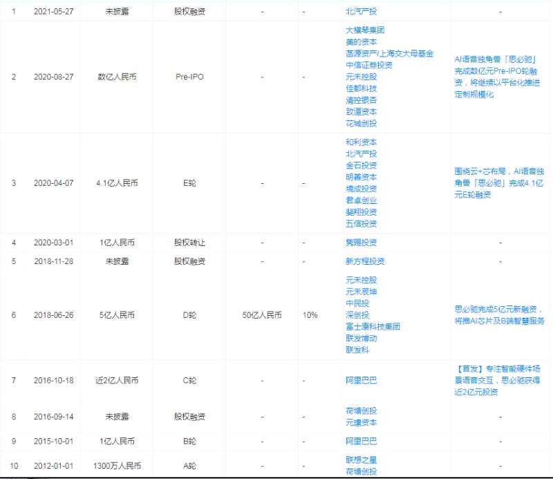 天眼查信息顯示,思必馳自成立至今已完成10輪融資,而背后的投資方可謂陣容強(qiáng)大,包括聯(lián)想之星、阿里巴巴、聯(lián)發(fā)科、富士康科技集團(tuán)等知名投資機(jī)構(gòu)或公司。2020年,思必馳完成了Pre-IPO輪融資。