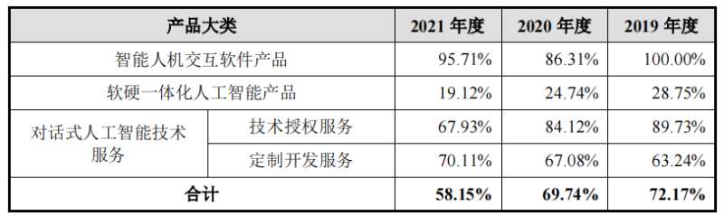 與此同時(shí),報(bào)告期內(nèi),思必馳綜合毛利率分別為72.17%、69.74%和58.15%,整體呈下滑趨勢(shì),對(duì)此,思必馳解釋稱,主要原因?yàn)閳?bào)告期內(nèi)公司產(chǎn)品結(jié)構(gòu)發(fā)生變化,毛利率相對(duì)較低的軟硬一體化人工智能產(chǎn)品收入占比增加。