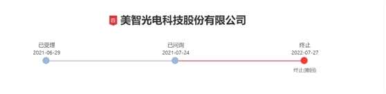 美智光電創(chuàng)業(yè)板IPO于2021年6月29日獲得受理,同年7月24日進(jìn)入已問(wèn)詢階段,從受理到撤單共歷時(shí)近13個(gè)月。