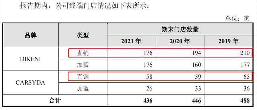 值得注意的是,迪柯尼直銷門店的數(shù)量逐年減少,公司仍計劃募資大幅擴(kuò)張。報告期各期末,公司直銷門店數(shù)量分別為275家、253家和234家。其中,“DIKENI”品牌的直銷門店數(shù)量分別為210家、194家和176家;“CARSYDA”品牌的直銷門店數(shù)量分別為65家、59家和58家。