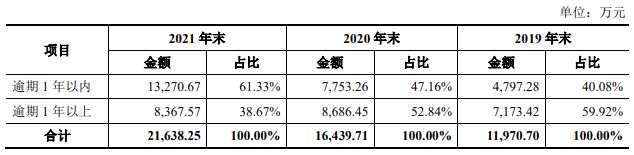 各期末,公司逾期應(yīng)收賬款余額分別為8,182.82萬元、11,970.70萬元、16,439.71萬元和21,638.25萬元,占報告期各期末應(yīng)收賬款(含合同資產(chǎn))余額的比例分別為40.17%、46.91%、47.70%和53.26%;其中逾期1年以上的應(yīng)收賬款余額分別為4,191.53萬元、7,173.42萬元、8,686.45萬元、8,367.57萬元,占比分別為51.22%、59.92%、52.84%和38.67%。過去4年,工大科雅各期逾期應(yīng)收賬款余額均超凈利潤。