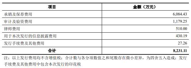 本次發(fā)行費用總額為8,231.11萬元,其中中信建投證券獲得承銷及保薦費用6,084.43萬元。