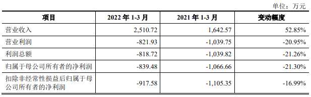 2022年1-3月,工大科雅營業(yè)收入為2,510.72萬元,同比增長52.85%;歸屬于母公司所有者的凈利潤為-839.48萬元,上年同期為-1,066.66萬元;經(jīng)營活動產(chǎn)生的現(xiàn)金流量凈額為-6,976.30萬元,上年同期為-5,652.90萬元。