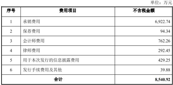 德科立本次公開發(fā)行新股的發(fā)行費(fèi)用合計 8,540.92 萬元(不含增值稅),其中,國泰君安證券股份有限公司獲得承銷費(fèi)用、保薦費(fèi)用分別為6,922.74萬元、94.34萬元,合計7017.08萬元。