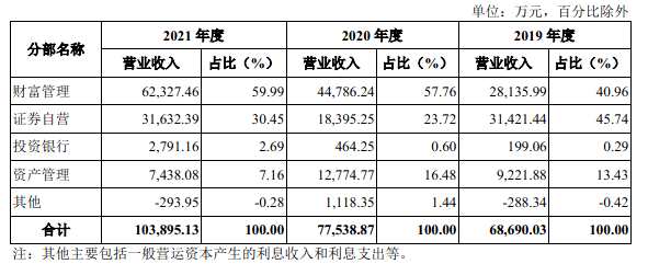 表一:華寶證券2019-2021年分業(yè)務(wù)收入情況