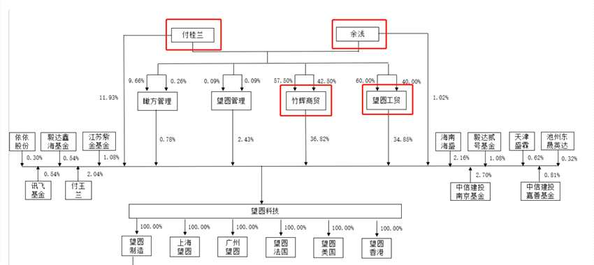 然而,望圓科技的股權(quán)高度集中。股權(quán)結(jié)構(gòu)顯示,竹輝商貿(mào)和望圓工貿(mào)為望圓科技控股股東,二者合計持有望圓科技71.67%的股份。竹輝商貿(mào)和望圓工貿(mào)均為付桂蘭、余淺共同控制的企業(yè),上述二人系母子關(guān)系,分別任望圓科技董事長兼總經(jīng)理、副董事長兼技術(shù)總監(jiān),二人為望圓科技共同實際控制人,直接及間接控制望圓科技87.8246%的股份。