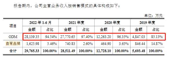 經(jīng)營模式上,望圓科技主要作為ODM供應(yīng)商,將泳池清潔機器人產(chǎn)品銷售給下游品牌商客戶,同時也打造自有品牌。不過報告期內(nèi),公司ODM模式業(yè)務(wù)收入占比均超85%,自有品牌收入規(guī)模較小。2022上半年,ODM模式業(yè)務(wù)收入占比高達(dá)94.54%。