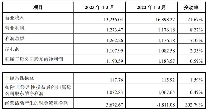 2023年1-3月,開創(chuàng)電氣營(yíng)業(yè)收入為13,236.04萬元,同比下降21.67%;實(shí)現(xiàn)凈利潤(rùn)1,107.99萬元,同比增長(zhǎng)2.35%;歸屬于母公司股東的凈利潤(rùn)1,190.59萬元,同比增長(zhǎng)0.59%;實(shí)現(xiàn)扣除非經(jīng)常性損益后的歸屬母公司股東的凈利潤(rùn)1,072.83萬元,同比增長(zhǎng)0.49%;經(jīng)營(yíng)活動(dòng)現(xiàn)金流量?jī)纛~3,672.67萬元,同比增長(zhǎng)302.79%。