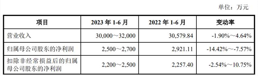 2023年1-6月公司預(yù)計(jì)實(shí)現(xiàn)營(yíng)業(yè)收入30,000萬元-32,000萬元,同比變動(dòng)-1.90%~4.64%;預(yù)計(jì)實(shí)現(xiàn)歸屬母公司股東的凈利潤(rùn)2,500萬元~2,700萬元,同比變動(dòng)-14.42%~-7.57%;預(yù)計(jì)實(shí)現(xiàn)扣除非經(jīng)常損益后的歸母凈利潤(rùn)2,200萬元~2,500萬元,同比變動(dòng)-2.54%~10.75%。
