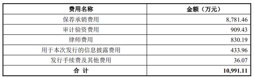 ??菩略幢敬喂竟_發(fā)行新股的發(fā)行費(fèi)用(不含增值稅)合計(jì)10,991.11萬元,其中國(guó)金證券股份有限公司獲得保薦承銷費(fèi)用8,781.46萬元。