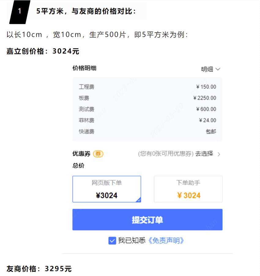 據(jù)嘉立創(chuàng)官方公眾號消息,其推送內(nèi)容中包含眾多產(chǎn)品降價消息,且文內(nèi)多含與友商的價格PK或性價比PK等。即便公司為行業(yè)內(nèi)競爭優(yōu)勢企業(yè),也無法避免與友商的“貼身肉搏”。